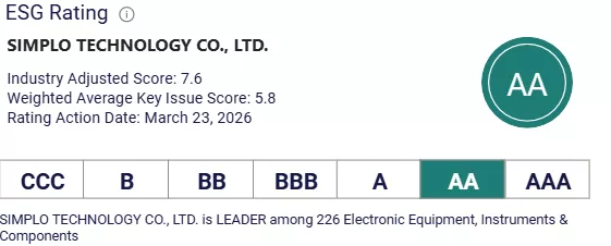 Simplo Technology Achieves MSCI ESG AA Rating, Among Global Industry Leaders