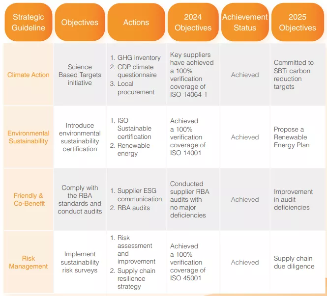 • Adjustment of Management Documents: With reference to the spirit of ISO 20400 sustainable procurement guidelines, sustainable factors should be incorporated into procurement policies and measures to assist enterprises in managing ESG risks and opportunities.