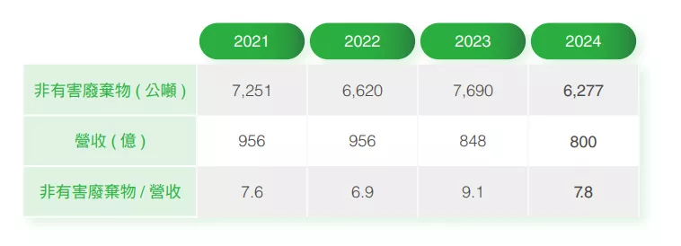 - 集團單位營收非有害廢棄物以2023為基準年,目標2030年降低10%