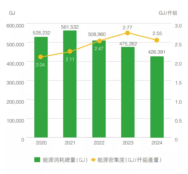 3. 能源密集度計算公式:能源消耗量(GJ)/每仟組電池模組