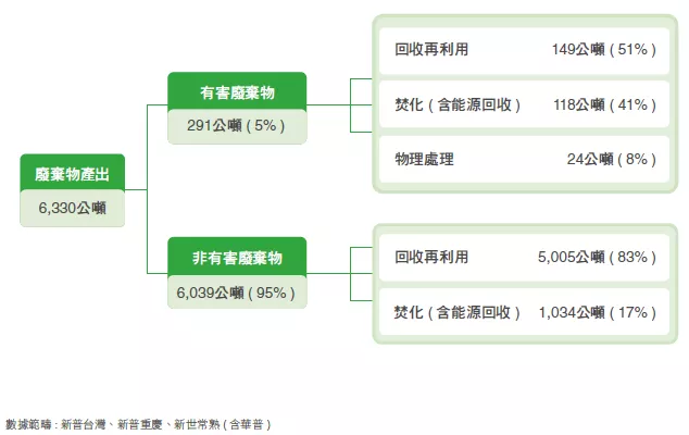 2. 其他處理新普台灣為物理處理;新世常熟(含華普)2023年起變更廢棄物處理商,廢棄物焚化處理具廢熱回收。